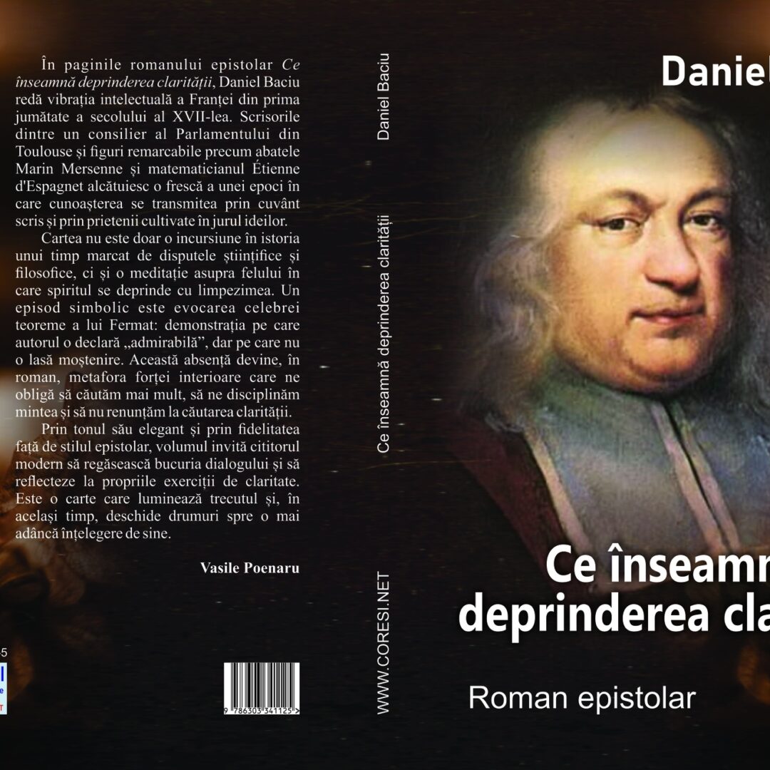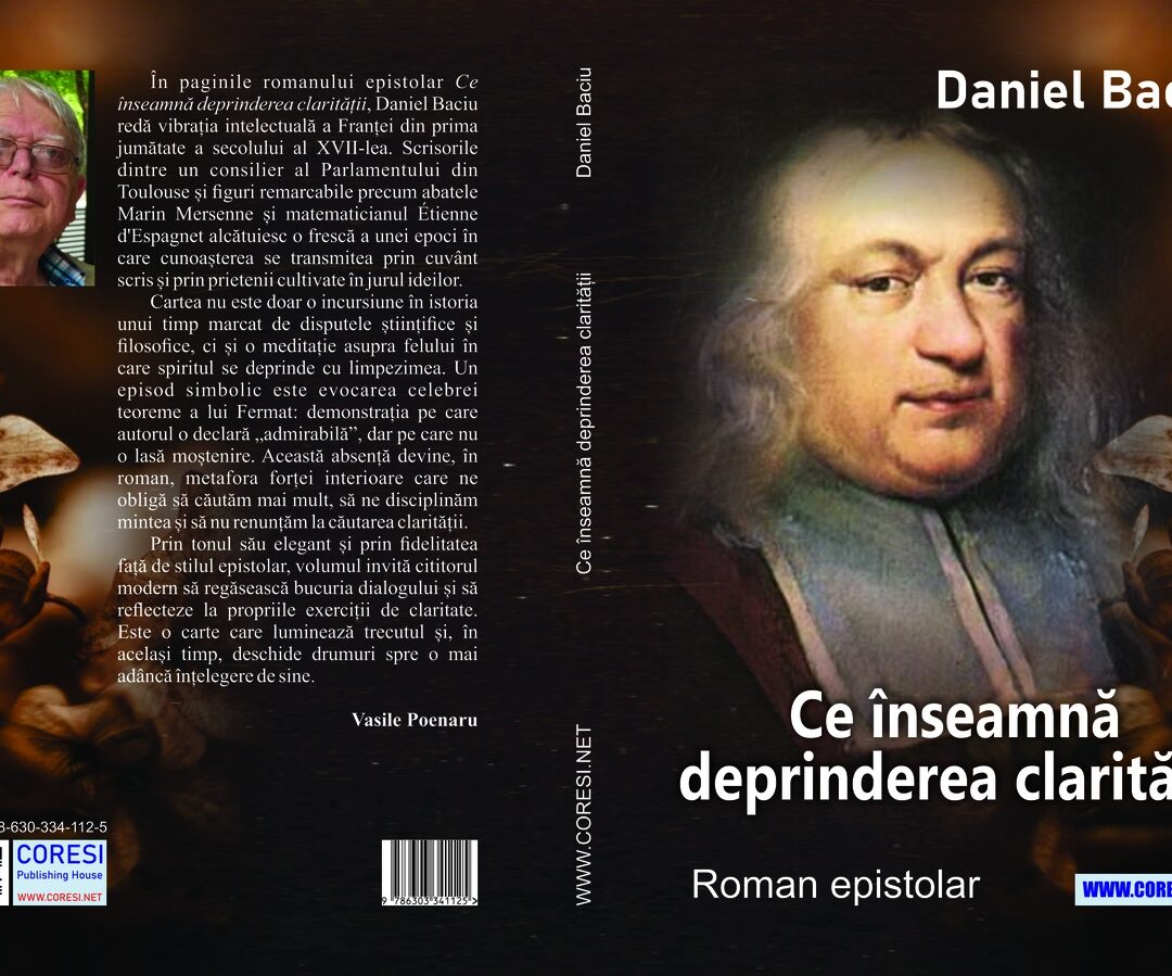 În paginile romanului epistolar Ce înseamnă deprinderea clarității, Daniel Baciu redă vibrația intelectuală a Franței din prima jumătate a secolului al XVII-lea. Scrisorile dintre un consilier al Parlamentului din Toulouse și figuri remarcabile precum abatele Marin Mersenne și matematicianul Etienne d’Espagnet alcătuiesc o frescă a unei epoci în care cunoașterea se transmitea prin cuvânt scris și prin prietenii cultivate în jurul ideilor.